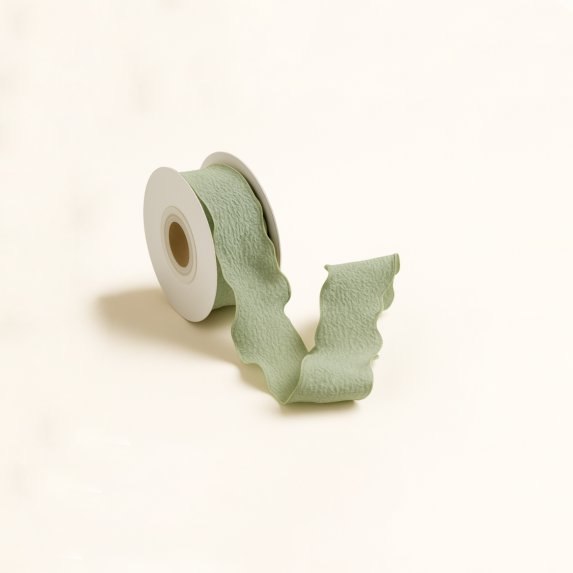 Crinkled Edge Silk Ribbon – Vintage Sheer Floral Wrap | 10 Yards Roll | ZESO Crafts & Decorations