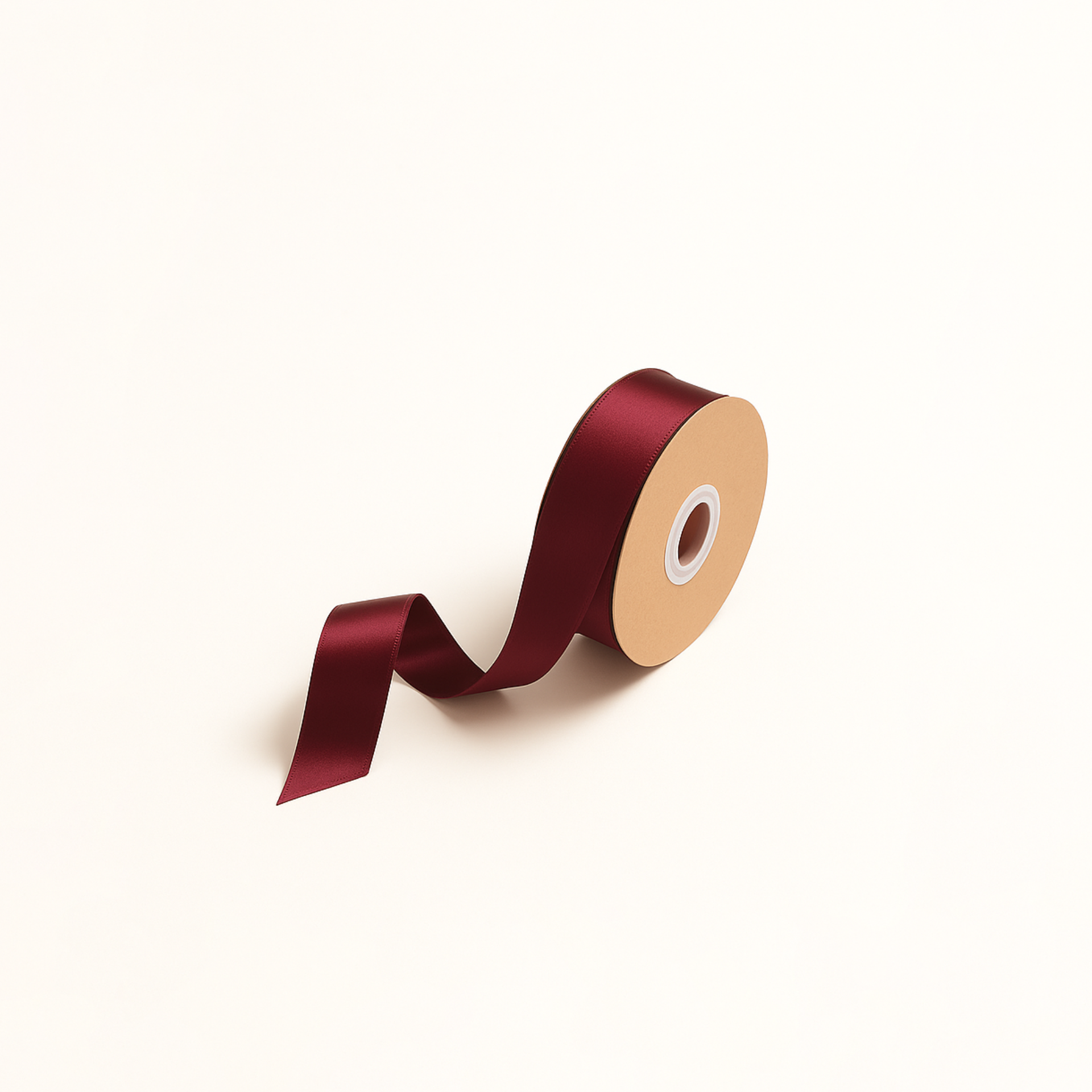 Wine Red polyester satin ribbon by ZESO Blooms — elegant sheen ribbon for floral design, weddings, and luxury gift packaging.